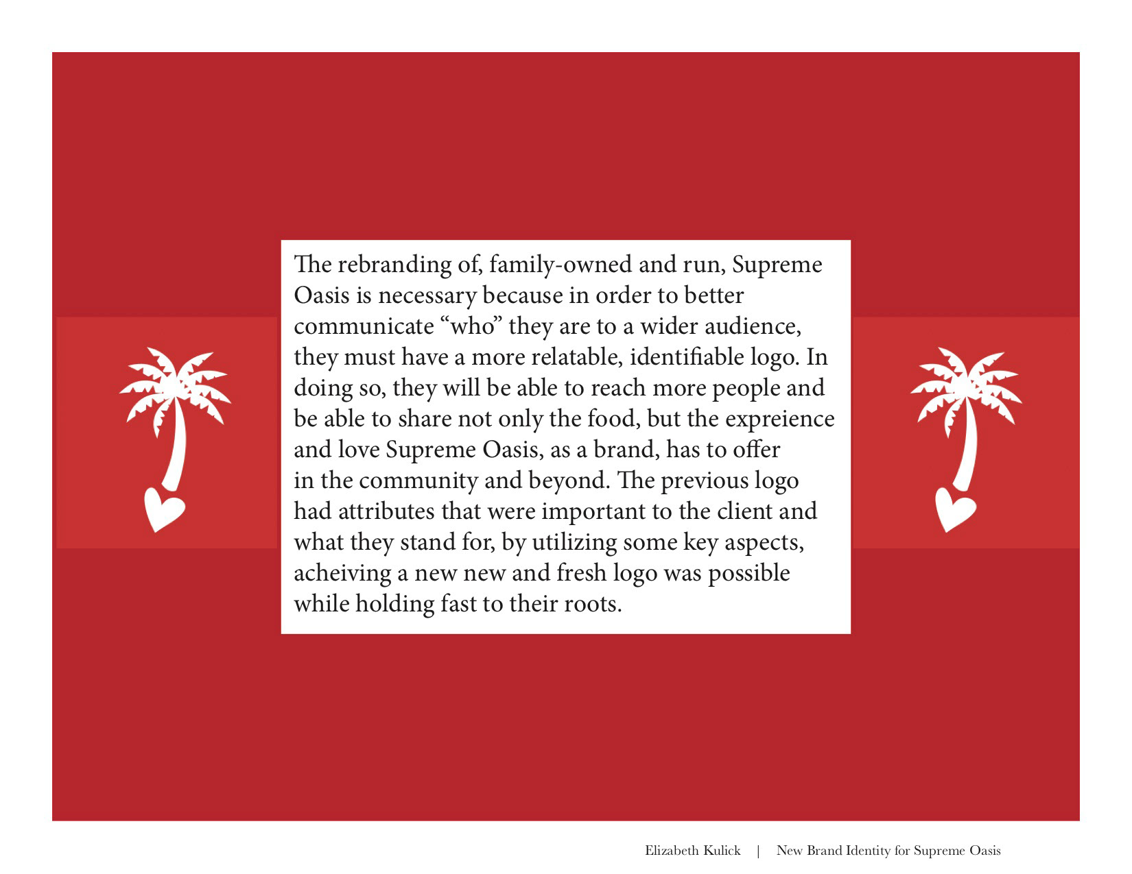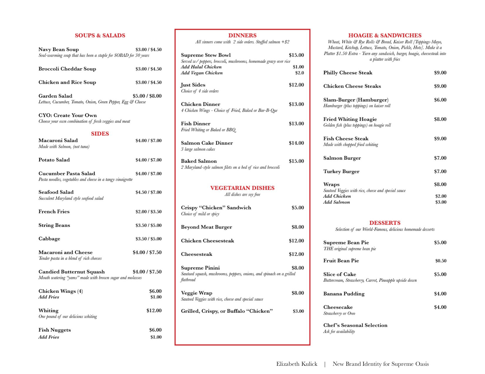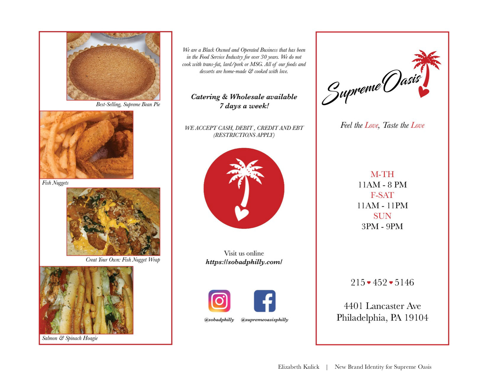 1 of 15 students project chosen for re-branding of Philadelphia-local restaurant, supreme oasis.